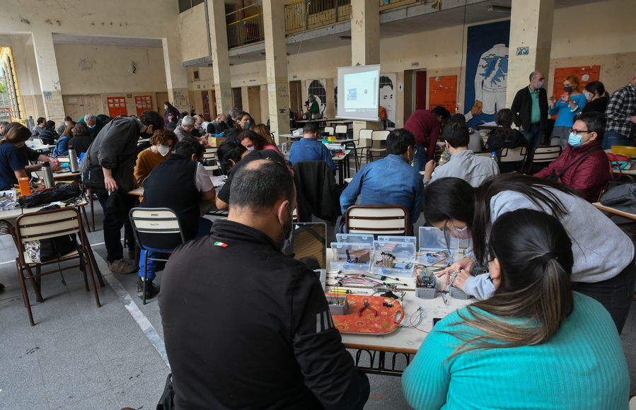 Integrantes de la comunidad educativa de 30 escuelas de la ciudad de Buenos Aires participaron de una jornada de construcción colaborativa de medidores de dióxido de carbono (CO2) para ser usados en sus propias aulas.