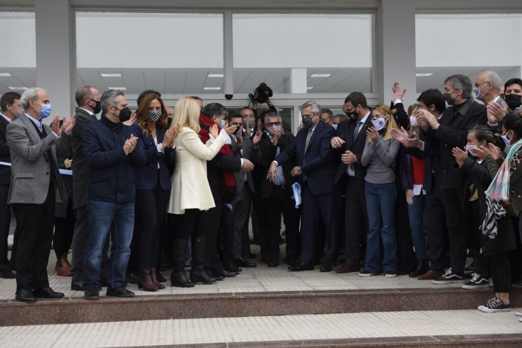 Previamente Alberto recorrió junto al intendente Ishii el nuevo edificio que busca cubrir la necesidad de esa zona de contar con una institución que brinde la carrera de medicina. Allí, el presidente saludó a los trabajadores y trabajadoras, cortó la cinta de inauguración y descubrió una placa conmemorativa del evento.