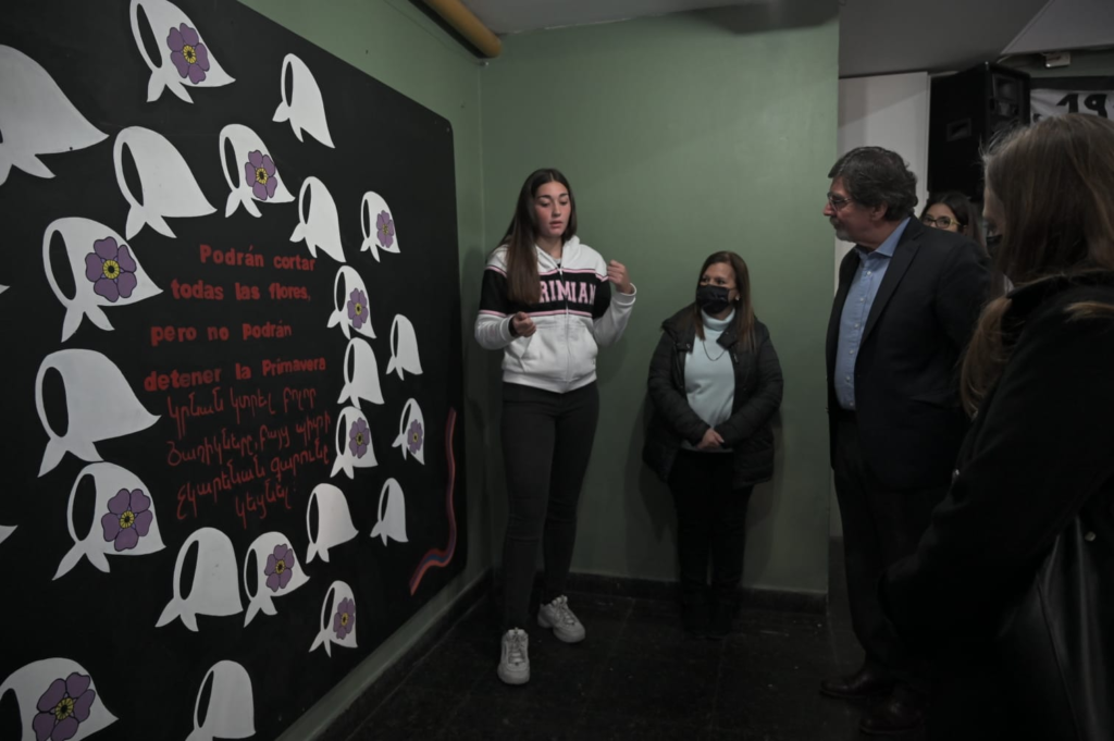 El genocidio armenio comenzó el 24 de abril de 1915 y se prolongó hasta 1923, donde 1,5 millón (aproximadamente) de armenios fueron asesinados por las tropas del imperio turco otomano con consignas discriminadoras y violentas que buscaban el exterminio físico y de todas las manifestaciones que caracterizan a ese pueblo. “Nos trae acá la memoria, un millón y medio de sueños, nos trae el mandato de recordar la catástrofe”, marcó Sileoni durante su discurso. “Me conmueve el gesto de generosidad y el paso gigante que ha dado esta comunidad”, dijo el funcionario al referirse a los murales y proyectos artísticos sobre derechos humanos.