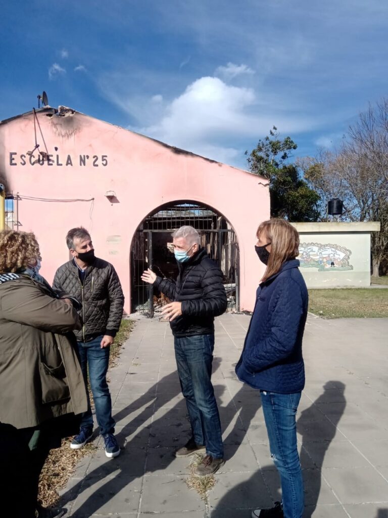 Recorrieron las obras que se están llevando adelante a través del «Plan de Emergencia Escolar». En esta oportunidad, las escuelas visitadas fueron la Secundaria N° 7, donde se refaccionan los baños y la cocina, la Primaria N° 5 de Empalme, con obras en cuatro aulas y dependencia para la preceptoría. Además, recorrieron la Escuela N° 25, Paraje Gutiérrez, en la que se planificó su reconstrucción total.
