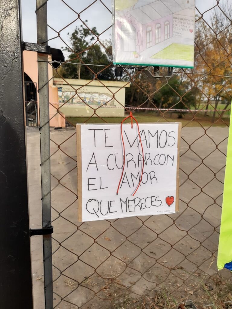 Aquel desperfecto técnico que se ocasionó un sábado de mayo, unió rápidamente a toda la comunidad educativa de la escuela. Al otro día, Natalia Pereyra observó que ese domingo estaban pasando varios autos por el histórico edificio para ver cómo había quedado. Entonces, tuvo la iniciativa de convocar a alumnos, alumnas y docentes a darle “vida” para que quien se acercara a verla, vea la esencia de la comunidad educativa que allí habita. “Hoy fuimos a “embellecerla”, a pintarla de colores con nuestro amor. Hicimos banderas, carteles y le colgamos globos, porque la queremos ver renacer”, manifestó aquel día. (ver nota) AP