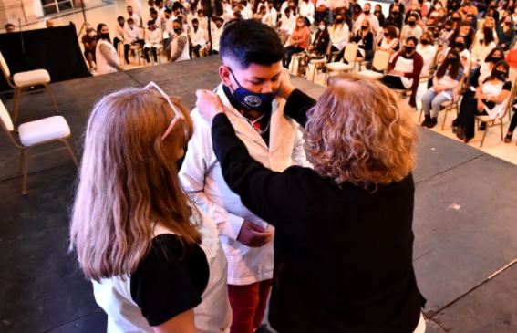 En el Centro Cultural Estación Terminal Sur, del Paseo Aldrey se realizó el acto de colación, donde más de setenta estudiantes de la Escuela Primaria N°1 “Pascuala Mugaburu” egresaron. Además de despedir a las dos divisiones de sexto año, la institución educativa, que en 2022 cumplirá 150 años, le entregó una medalla de agradecimiento al padrino del colegio, Florencio Aldrey.
