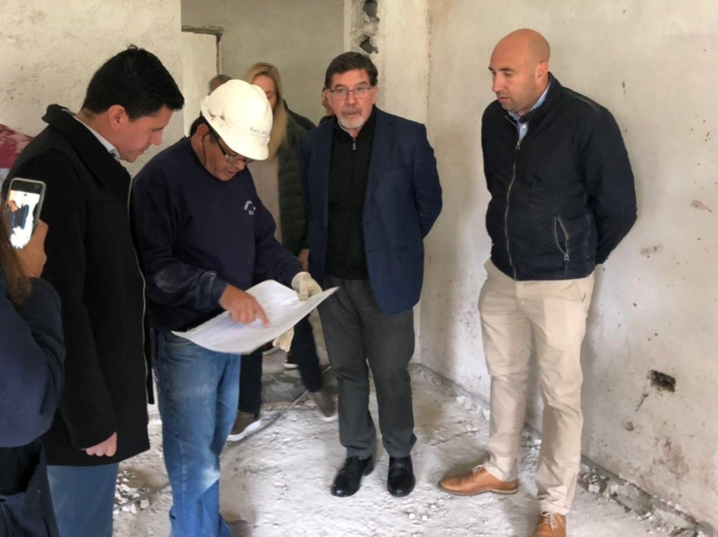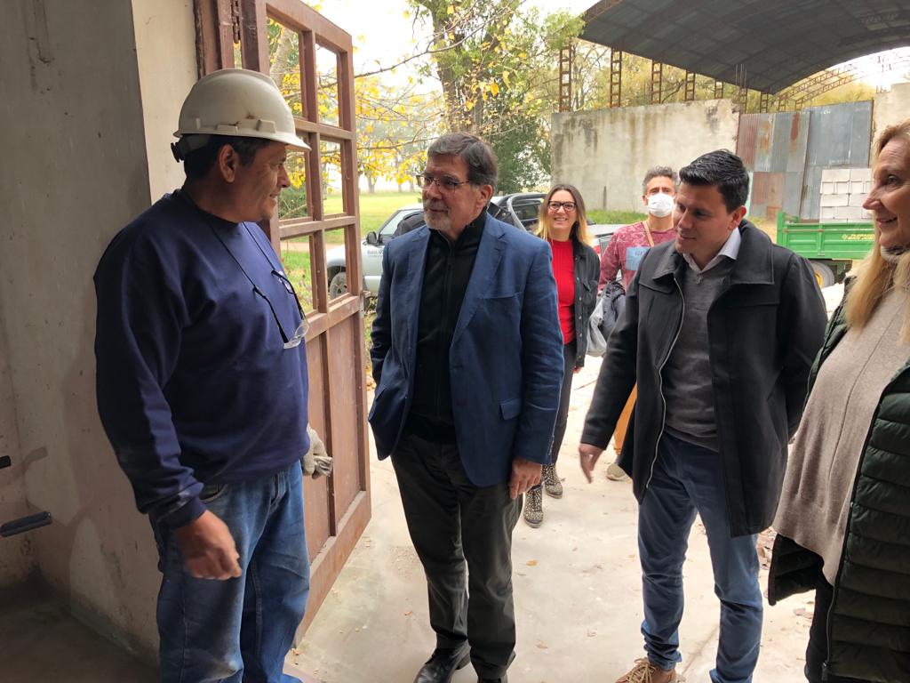 Tras la inauguración, los funcionarios provinciales y locales recorriendo el nuevo edificio de la Escuela de Artes Visuales “que sigue avanzado, una demanda histórica de la comunidad educativa», señaló el intendente.