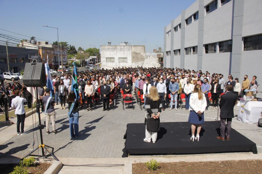 Tras el corte de cinta para inaugurar las nuevas obras, toda la comunidad educativa e invitados realizaron una recorrida por la institución y un brindis para celebrar la renovación de esta histórica escuela de San Miguel.