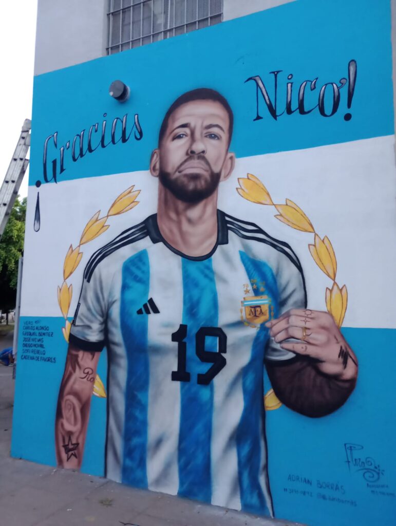Una agrupación vecinal se encargó de llevar a cabo la obra. Los impulsores de la iniciativa pensaron en este paredón dada la cercanía a la casa de sus padres y también por ser la escuela donde Otamendi cursó sus estudios primarios.
