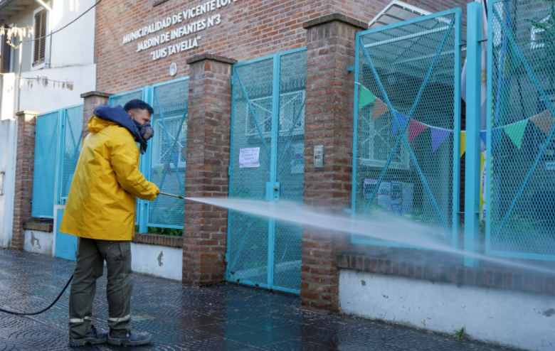 “Higiene Urbana” realiza operativos de desinfección en las inmediaciones del Jardín Maternal N° 7 de Carapachay y el Jardín de Infantes N° 3 de Munro, en el marco del regreso de las clases presenciales.